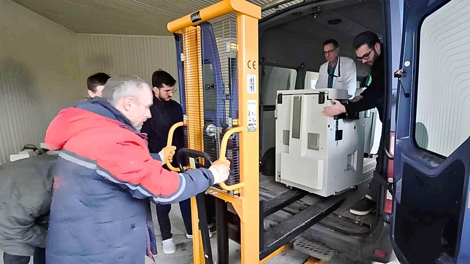 The third analyzer will soon be transported to a hospital near the eastern front. Deliveries to the final destinations are handled by our fantastic partner in Ukraine, Initiative E+.